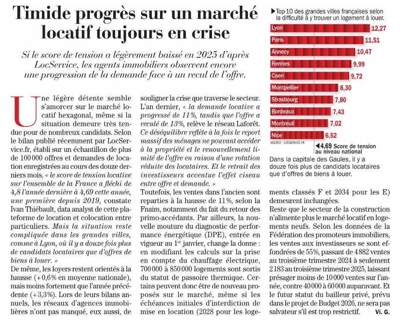 Le site d'actualités Actu.fr publie une étude de LocService sur le marché de la location à Nantes.